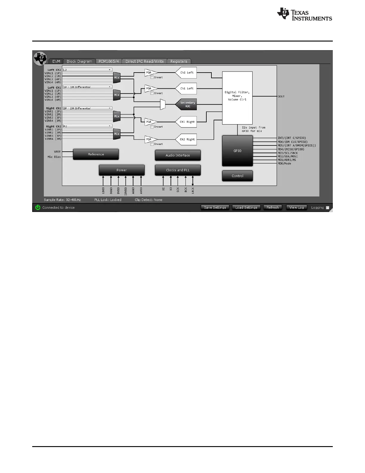 Texas Instruments PCM186xEVM - 1 M Differential and 2 P-2 M Differential Shown in Block Diagram Tab