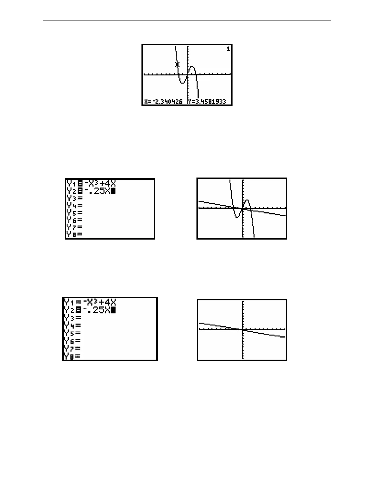 again so that both graphs are plotted. Press TRACE and the cursor appears first on the graph of y =