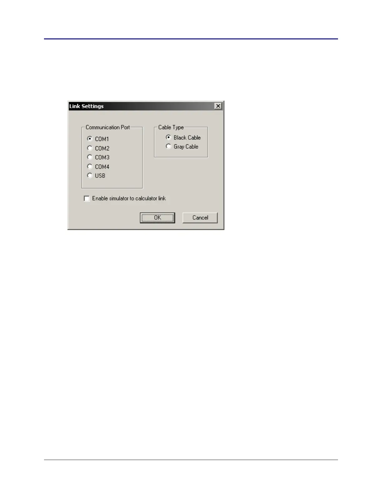Enable simulator to calculator link will allow you to send and receive data to an external device