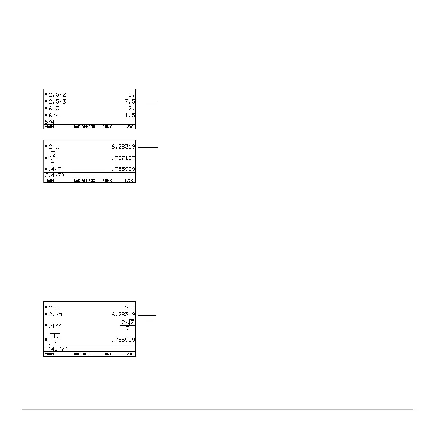 your entry contains a decimal point. Also, certain functions may display APPROXIMATE