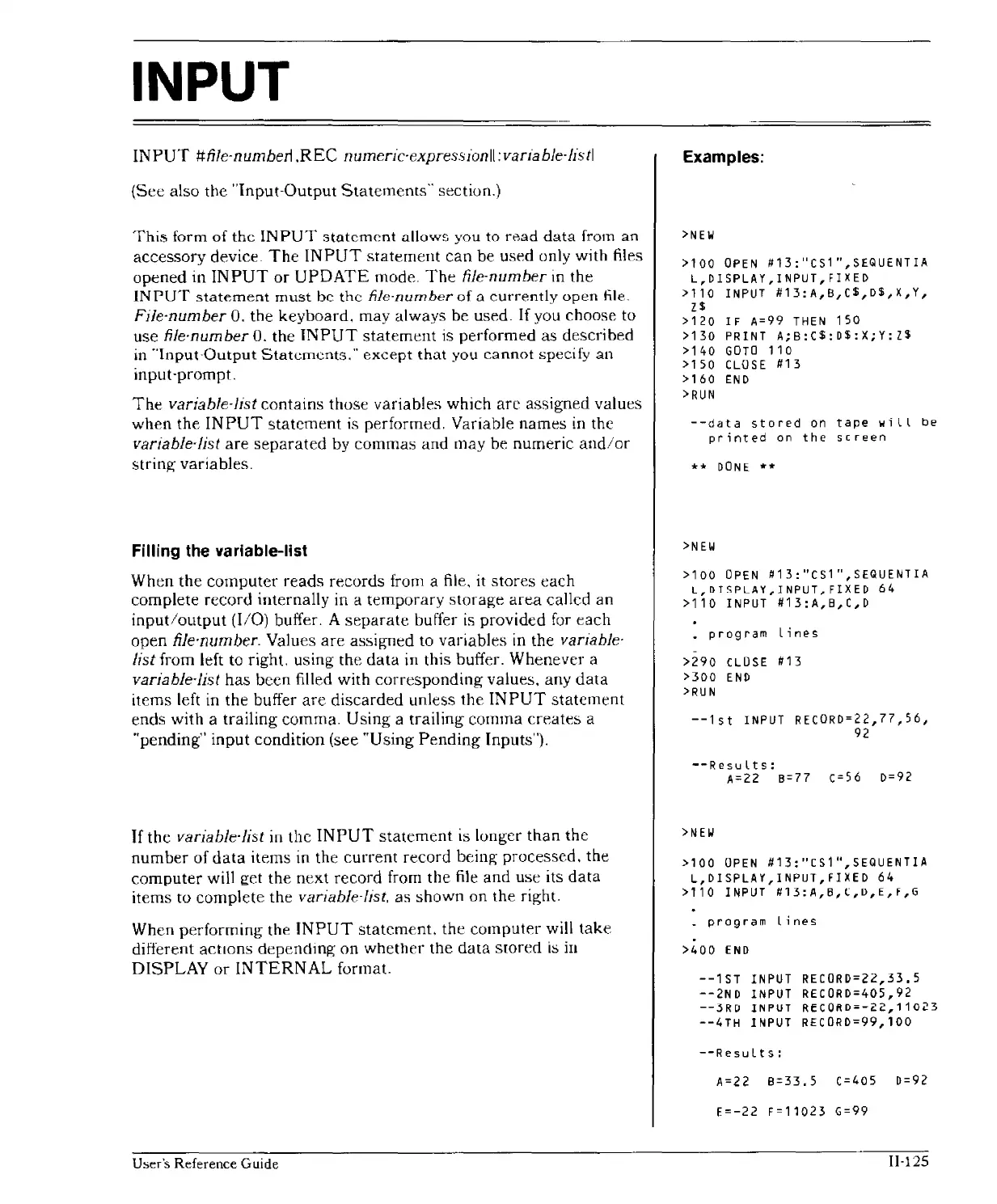 L,~TSPLAY,lNPUT,FIXED