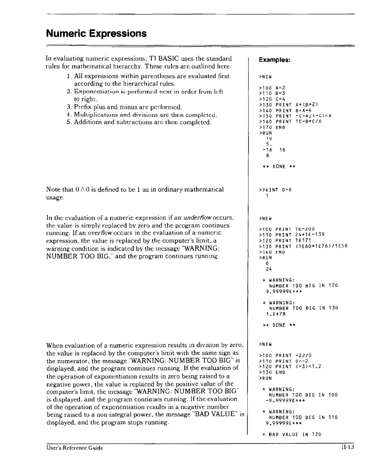 Numeric Expressions