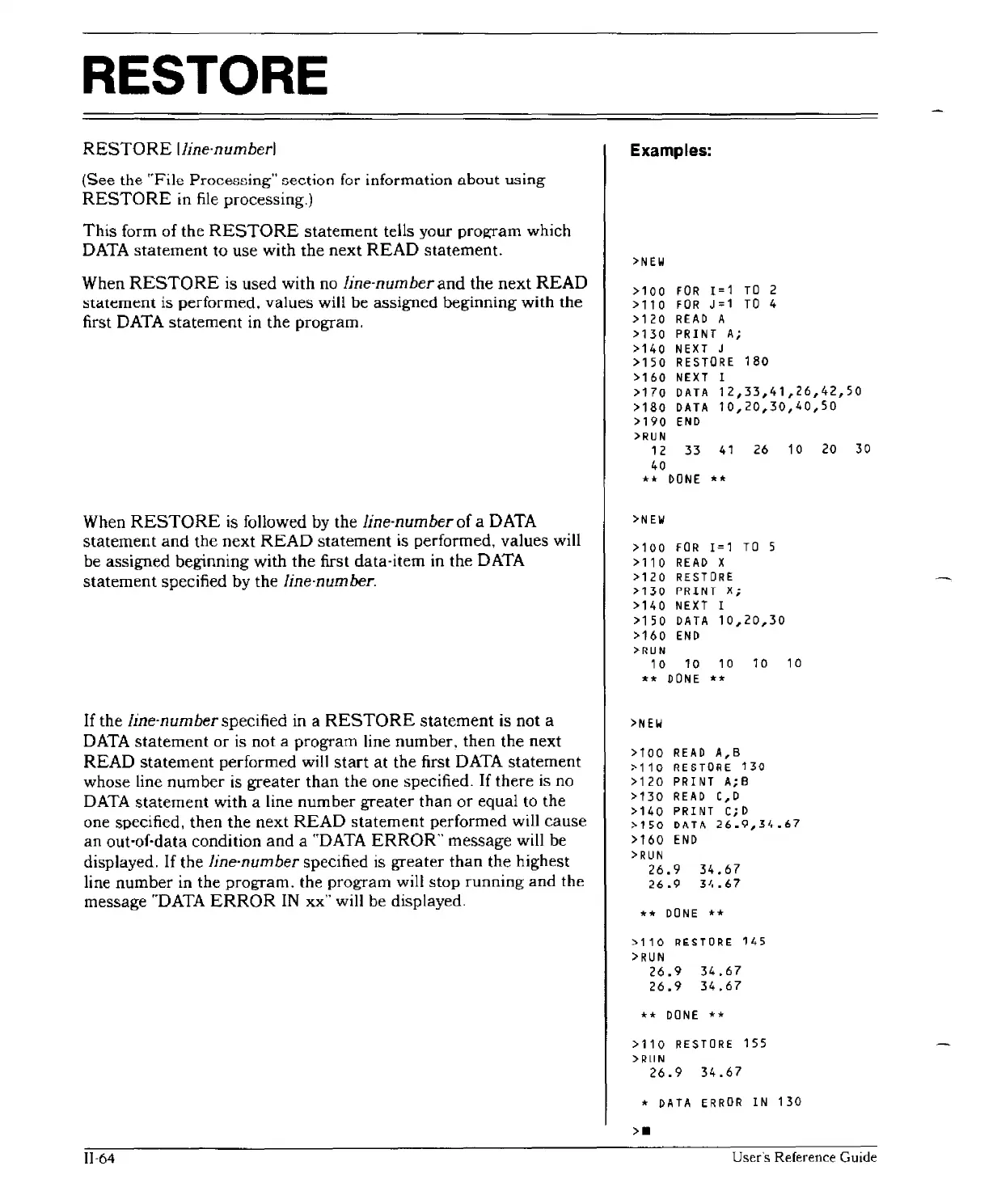 is followed by the line-number of a DATA