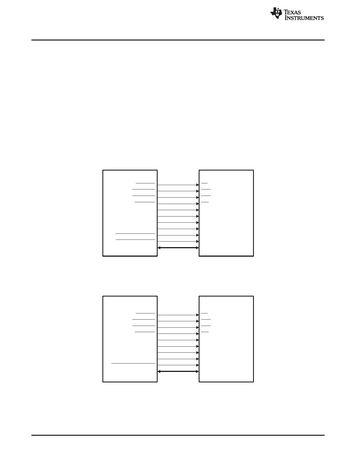 Figure 19-5 shows an interface between the EMIFB and two 4M × 16 × 4 bank SDRAM devices. Refer to