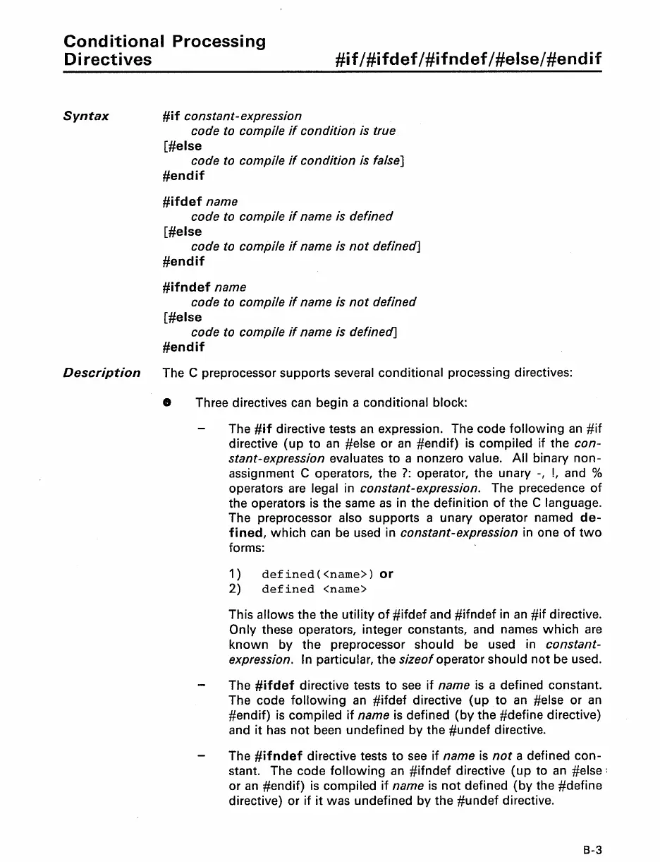 The C preprocessor supports several conditional processing directives: