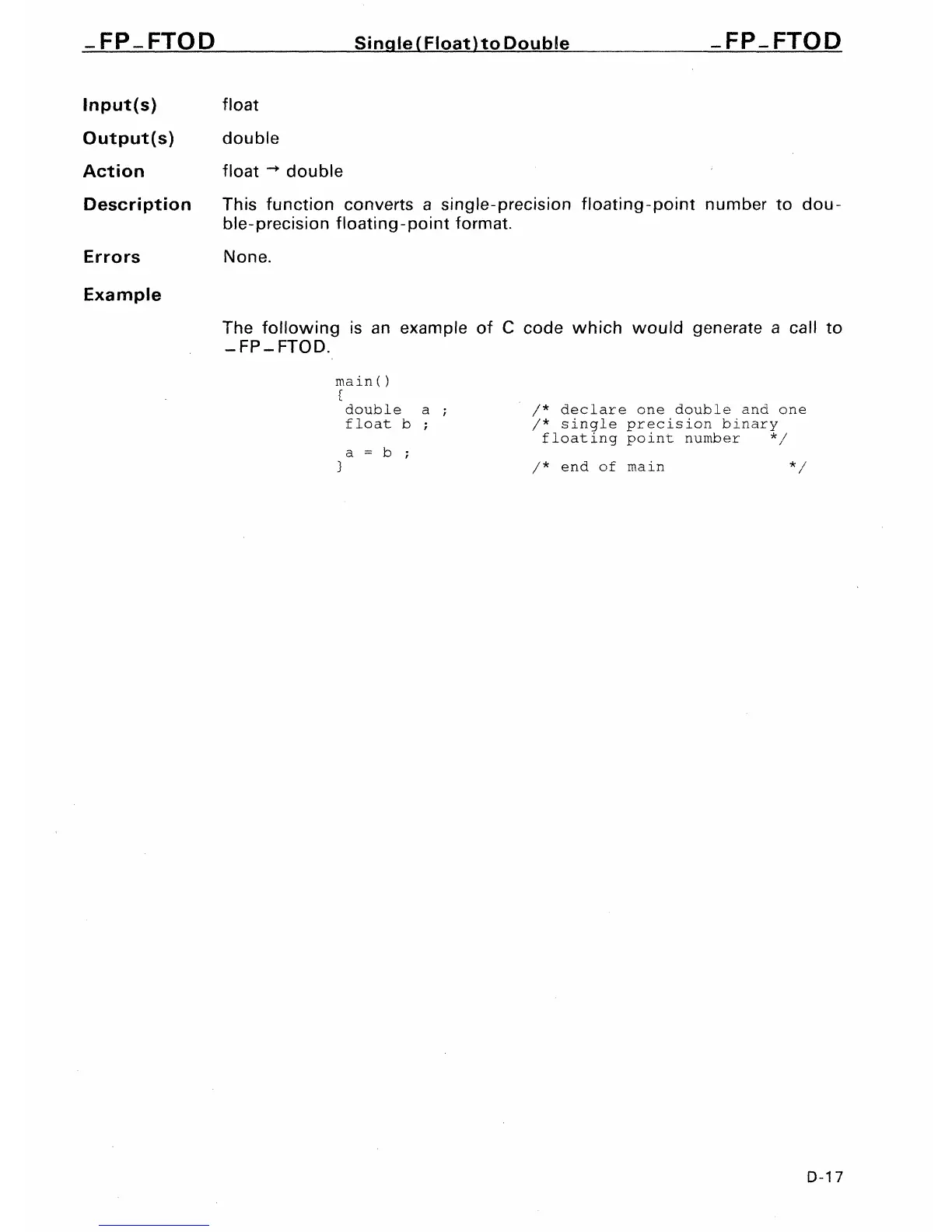 This function converts a single-precision floating-point number to dou-
