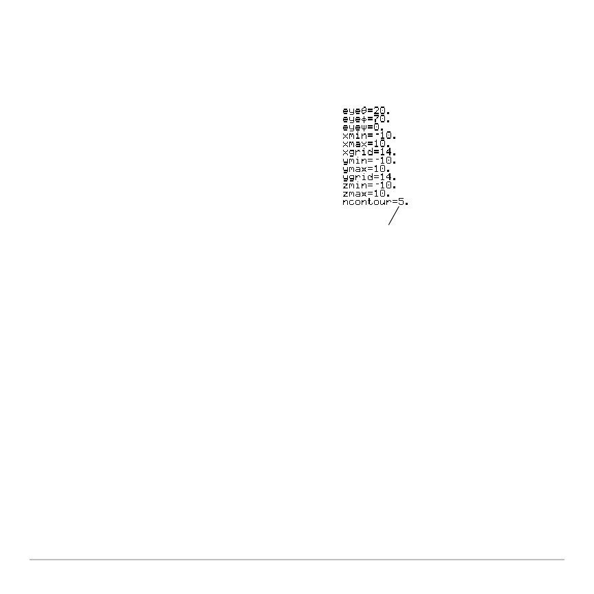 ncontour=5 and you use the standard viewing window (zmin=L10 and zmax=10) , the