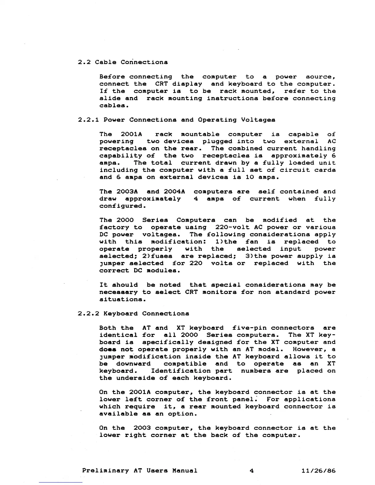 Texas Microsystems, Inc. 2003 - Cable Connections; Power Connections and Operating Voltagea; Keyboard Connections