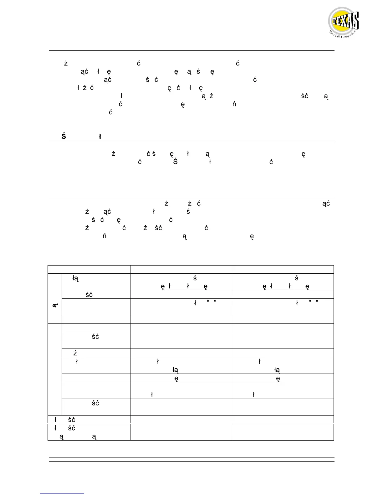 Do kosy Texas nale y stosowa wiec zap onow o symbolu CJ7Y, przerwa mi dzy