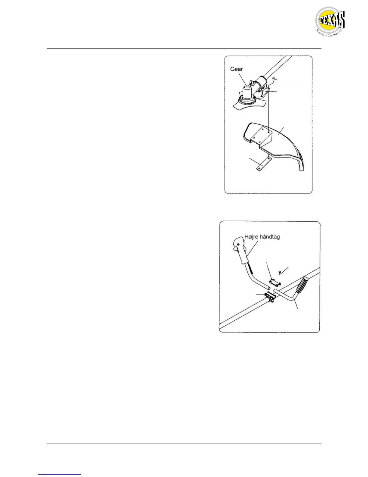 Texas CG260B - Montage des Schutzschildes und Griffes