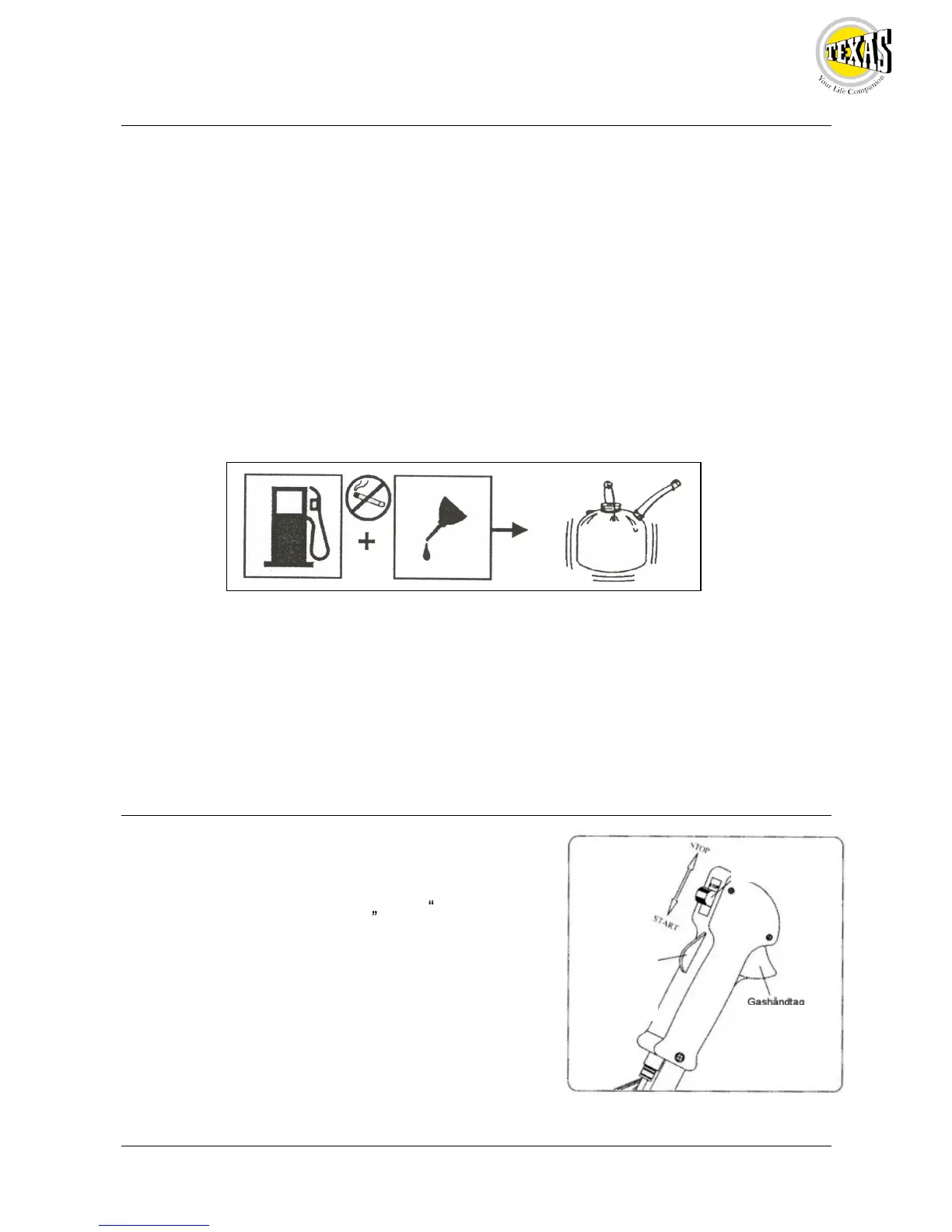 Texas CG260B - Krafstoff; Start; Stop