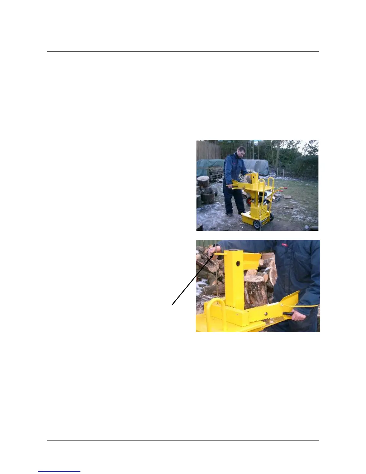 vigtigt, at hvis brændekløveren ikke kløver i første forsøg, skal du stoppe maskinen og