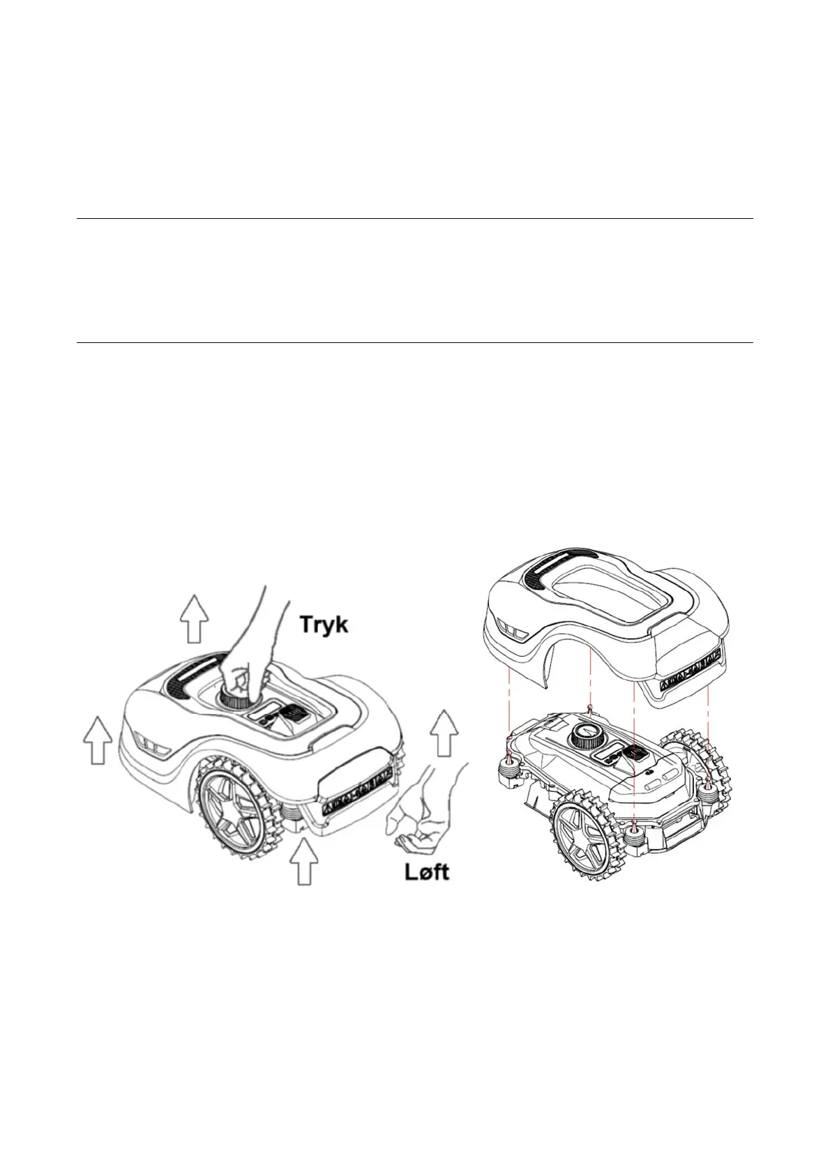 1. Tryk ned på robottens højdejusteringsknap (hold presset)