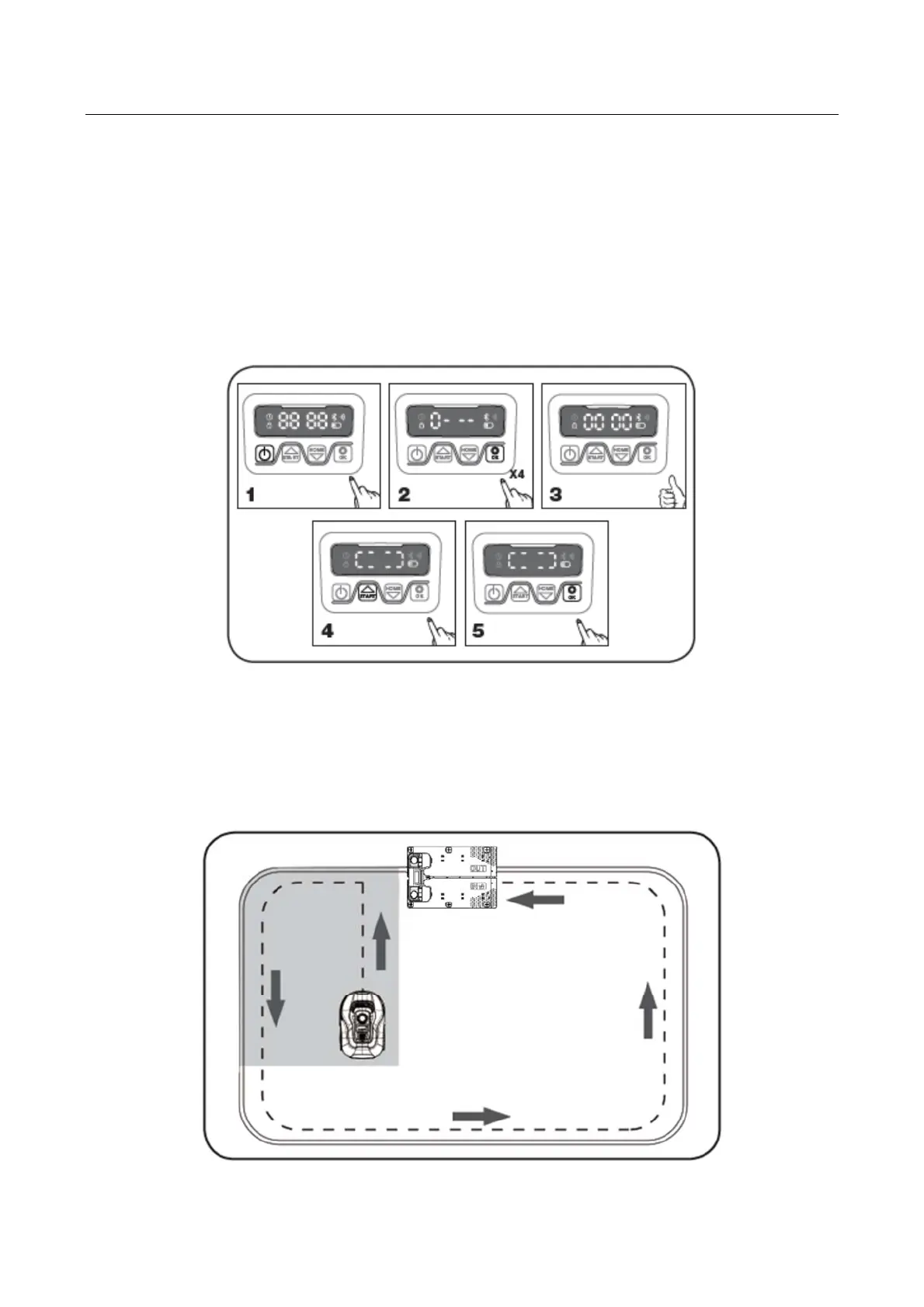 5. Press START, and then press OK to start the lawn cutting. Now, the robot will start