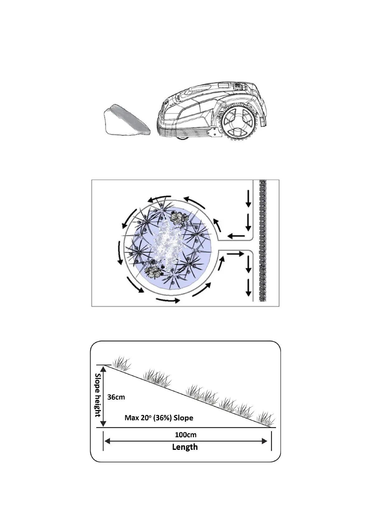 Der Rasenmähroboter kann Hänge mit einer Neigung von maximal 20° hinauf- und