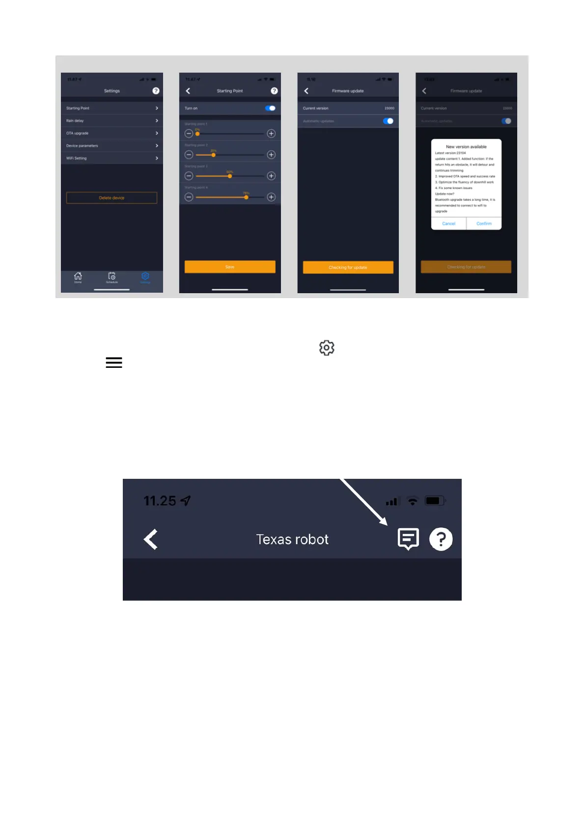 I app'en’s hjemmeskærm (Home) findes en log, som registrerer alt, hvad robotten gør hver