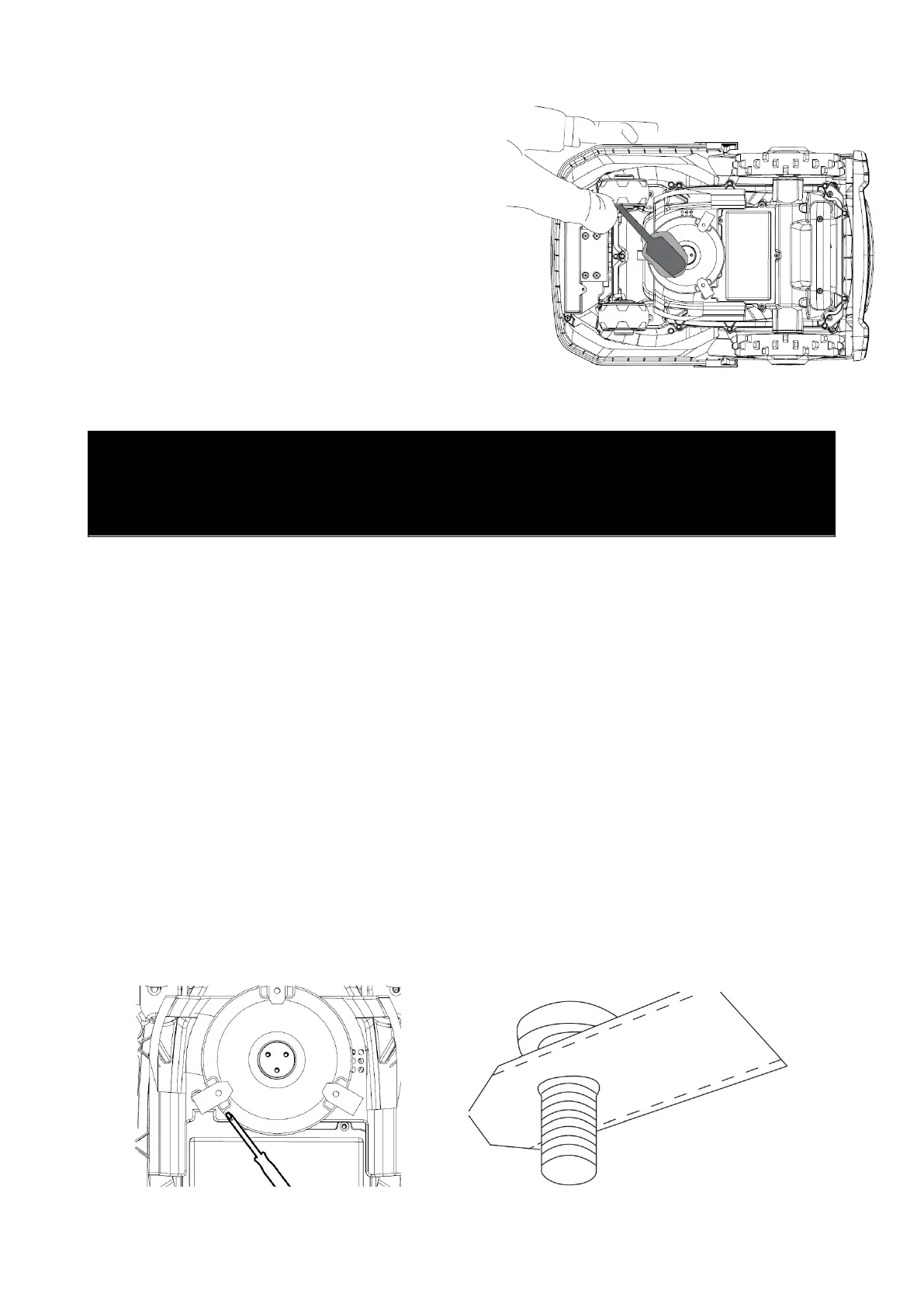 robotten før der arbejdes med knivbladene). Skru skruen ud, fjern snavs og græsrester på