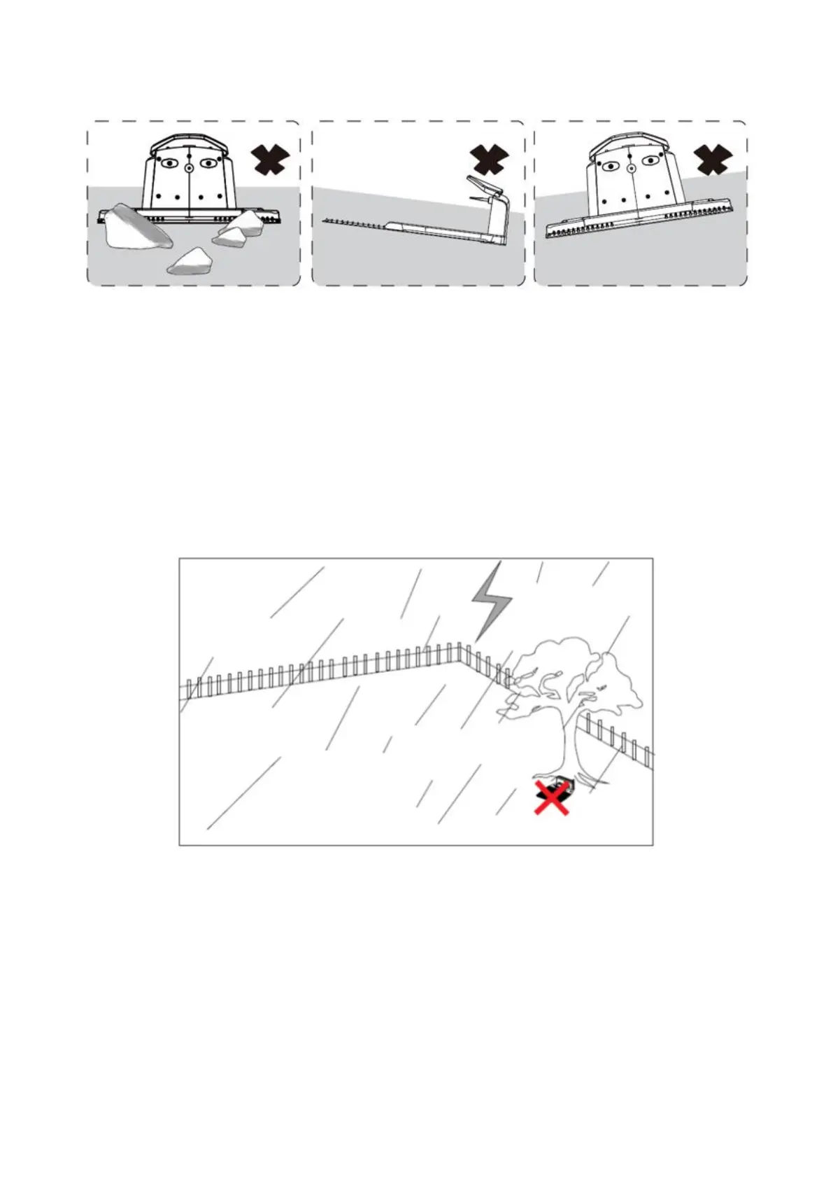 It is recommended that the robot lawn mower does not run when there is a thunderstorm