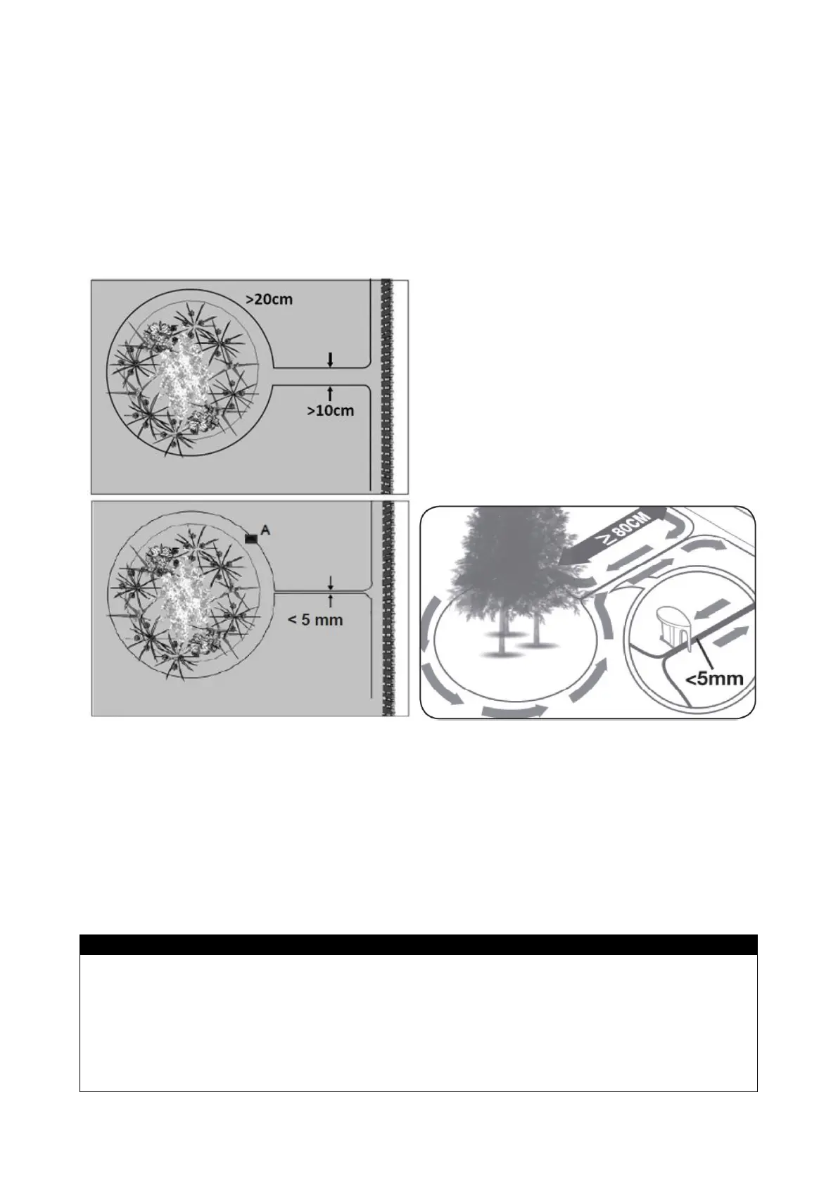 wires must be at least 10 cm apart and with at least 20 cm distance to the flower bed (see