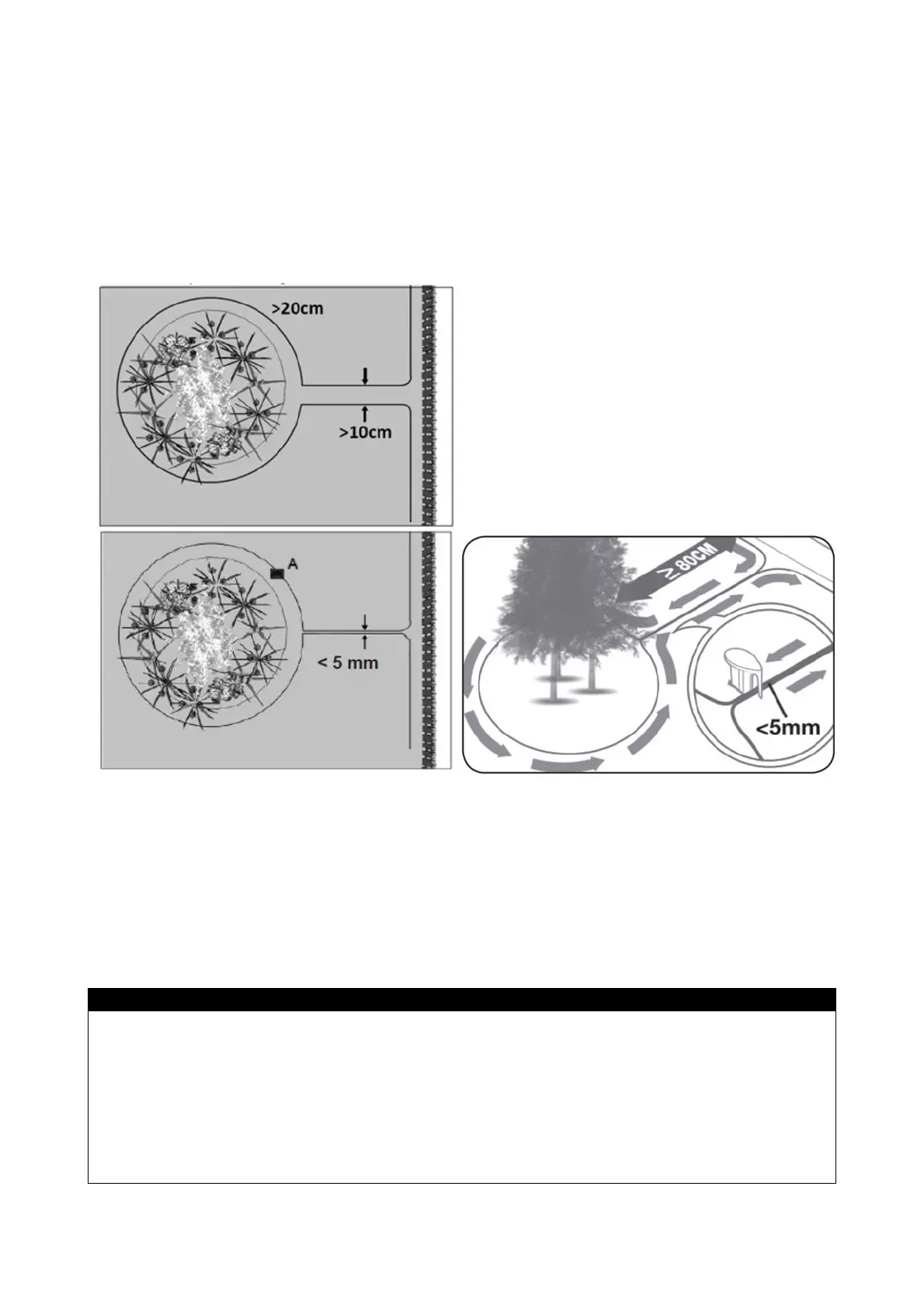 Husk, når afgrænsningskablet skal lægges rundt om blomsterbedene, er det vigtigt at