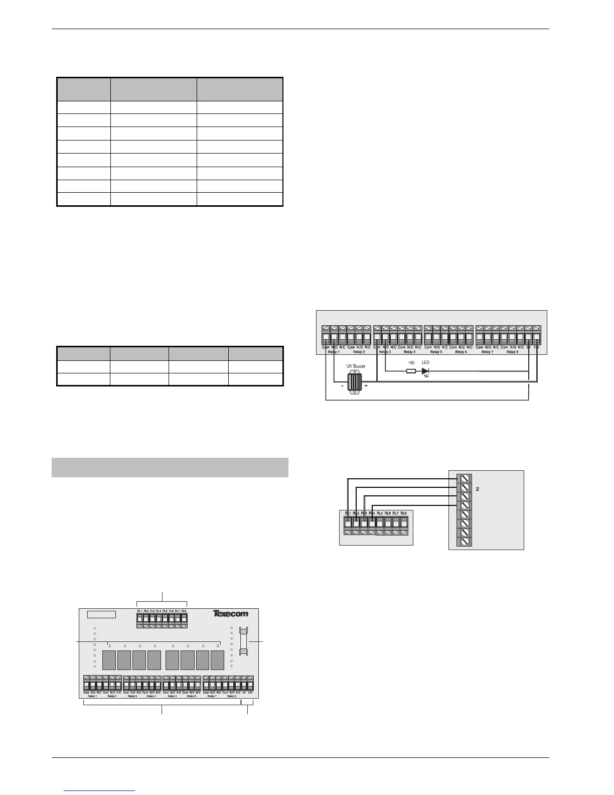 Each output is a clean contact relay rated at 3A @ 12V. The diagram