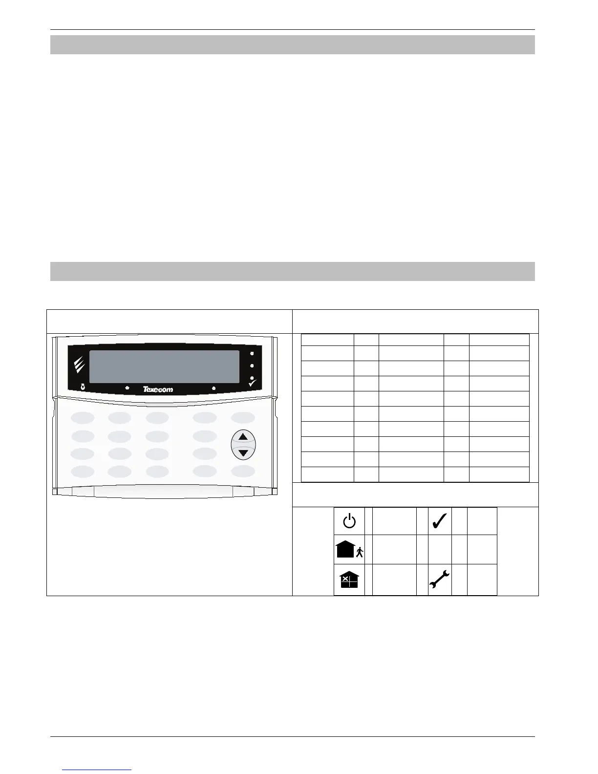 Texecom provide a number of different styles of keypads. The image below shows the layout of the Premier LCDLP Keypad with
