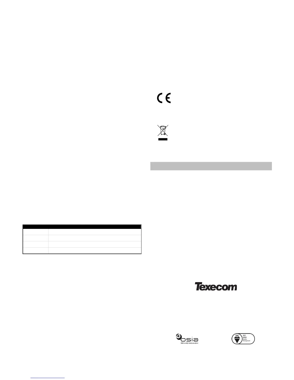 All Texecom products are designed for reliable, trouble-free operation. Quality is