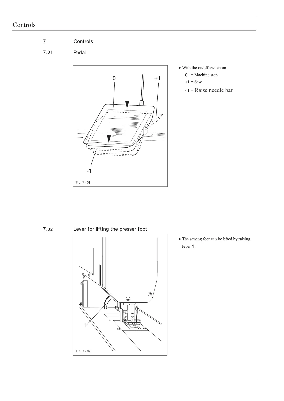 Texi Forte UF - Controls; Pedal; Lever for lifting the presser foot
