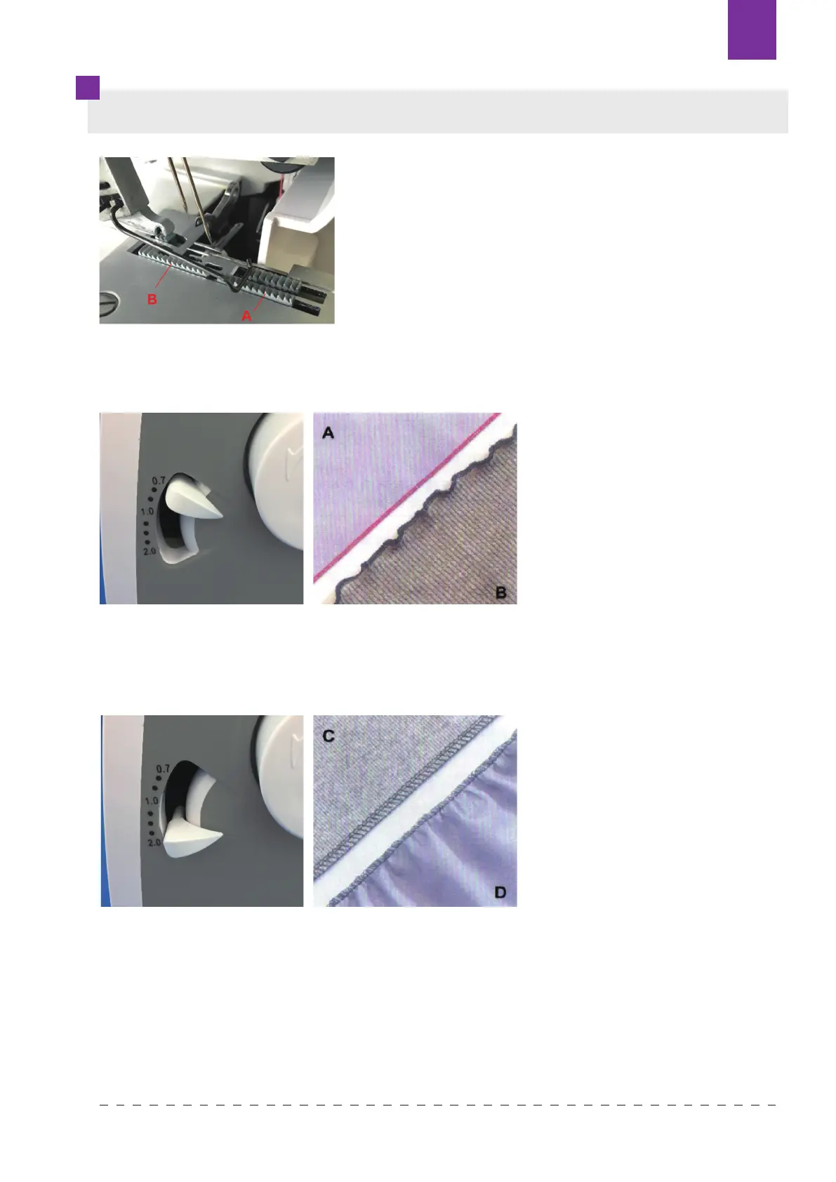 realizar una costura muy refinada. En telas trenzadas, se puede hacer el efecto de ola (B).