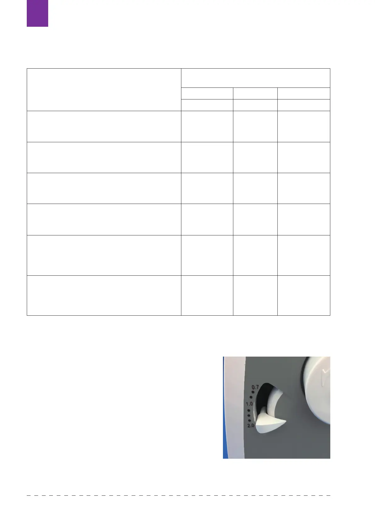 poniżej „1,0”. Ustawienie pokrętła zależy od