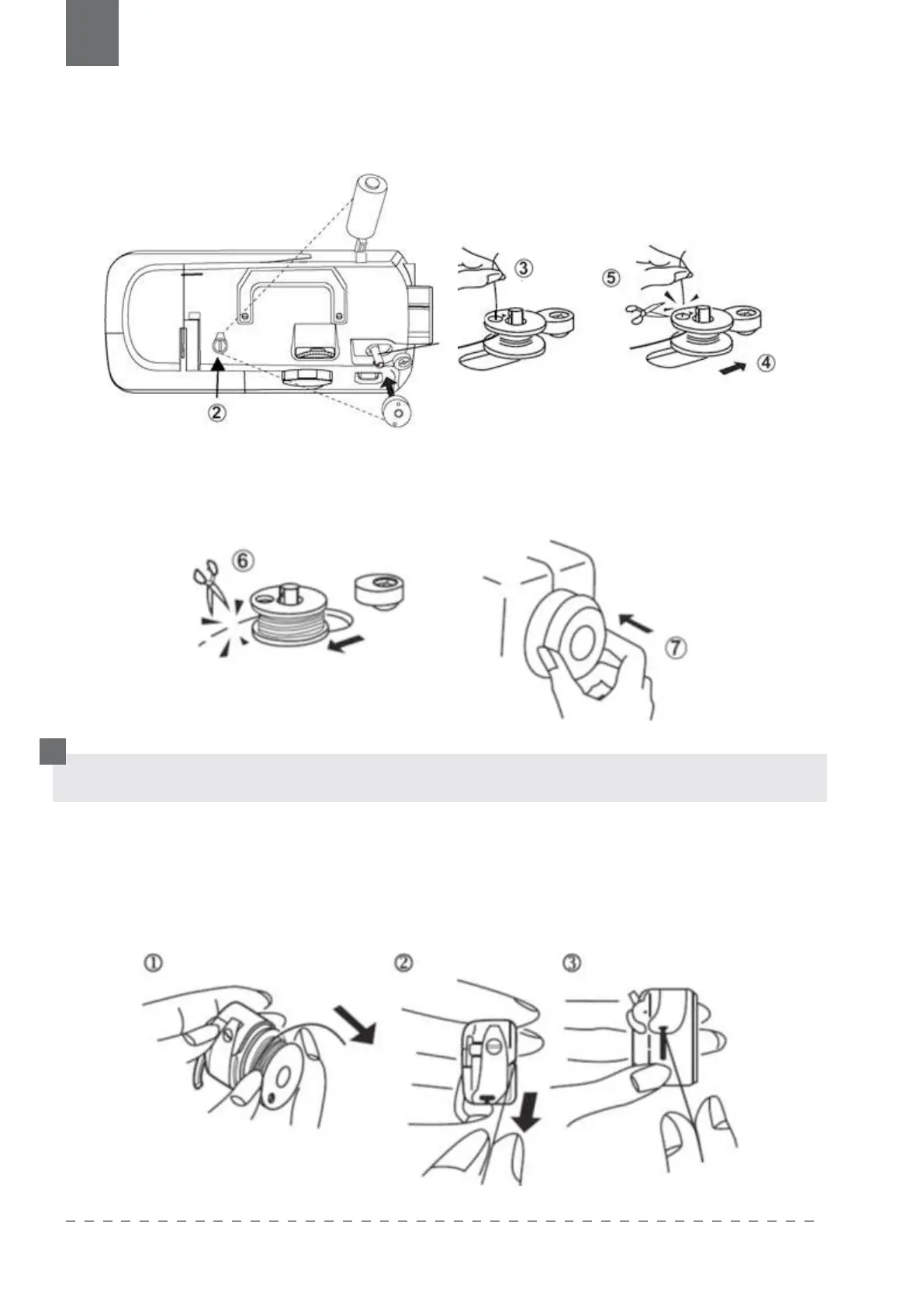 1. Place bobbin into bobbin holder with the thread unwinding counter clockwise.