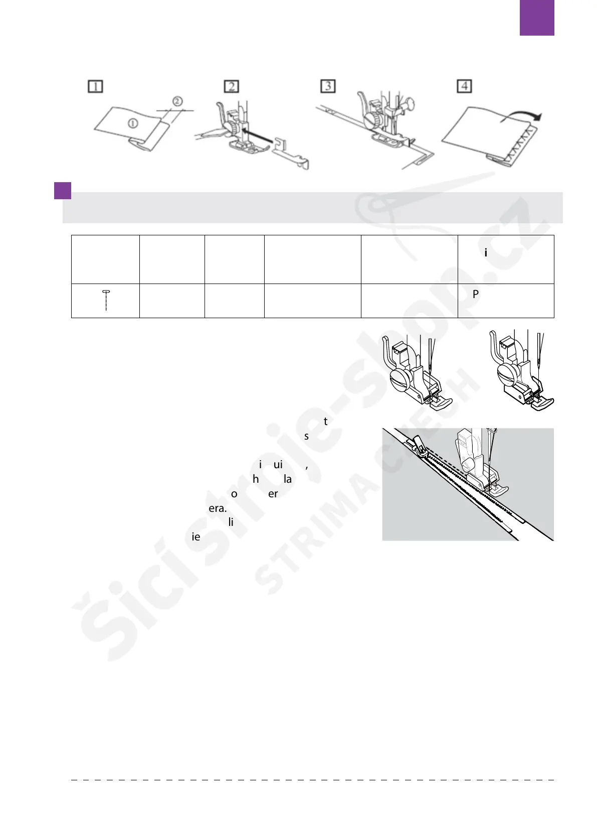 1. Ponga el pie adecuado para cremalleras.
