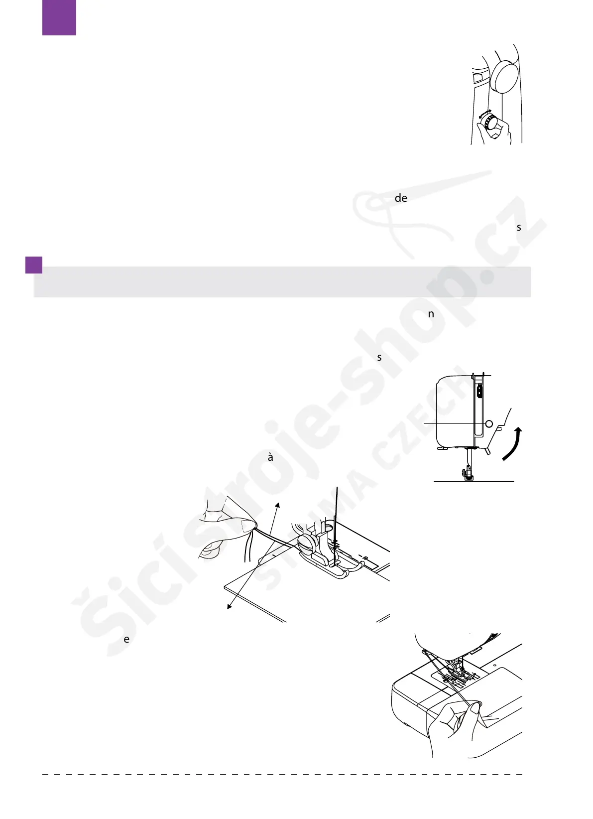 8. Soulevez l’aiguille en tournant le volant ou à l’aide de la touche