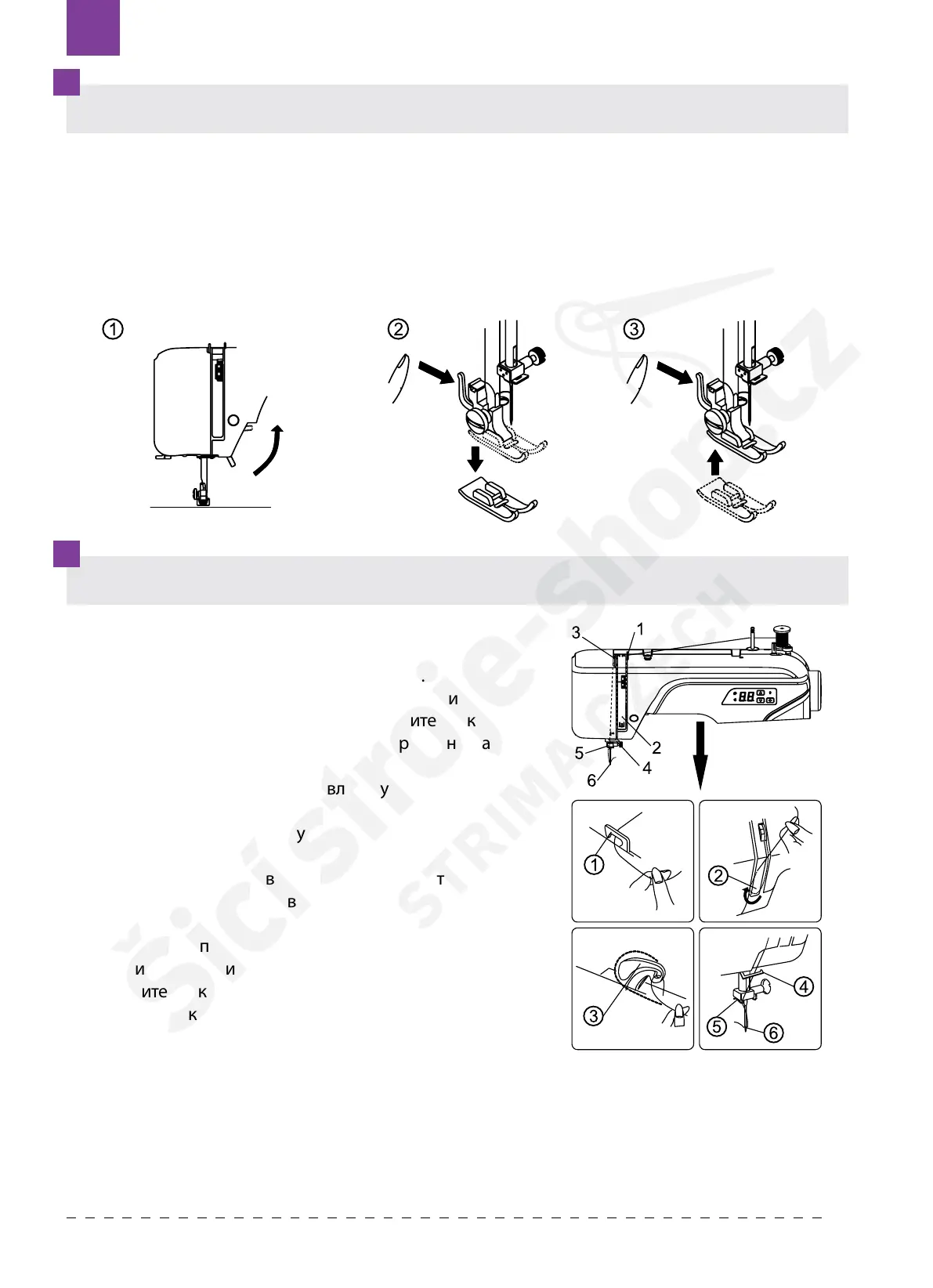ВНИМАНИЕ: Также следует заправлять нитку в двойную иглу.