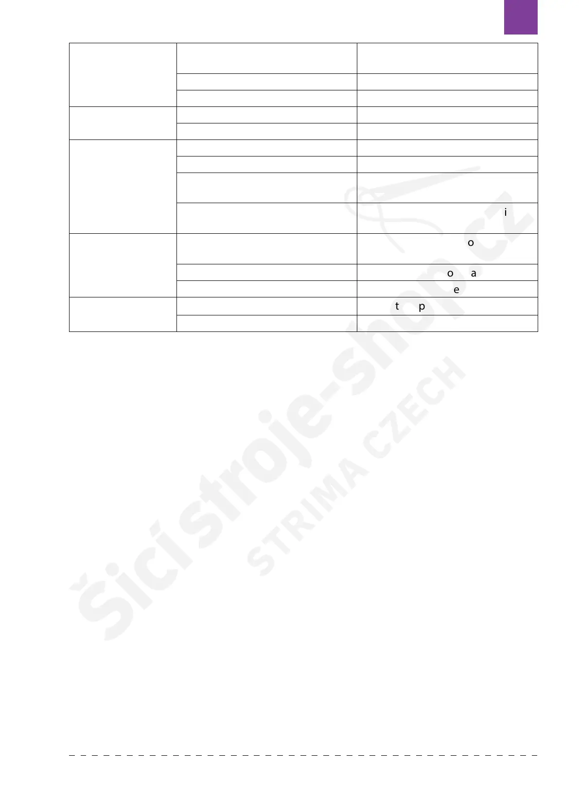 Stroj nefunguje Stroj není zapojen v el. síti Zapojte stroj do el. sítě