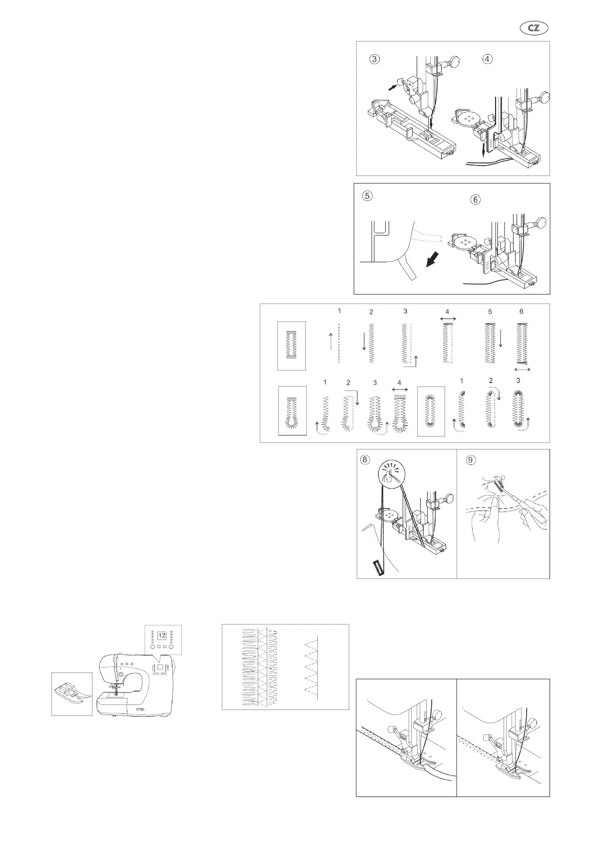 8. Zvedněte páčku patky, látku vyjměte a nitě odřízněte.