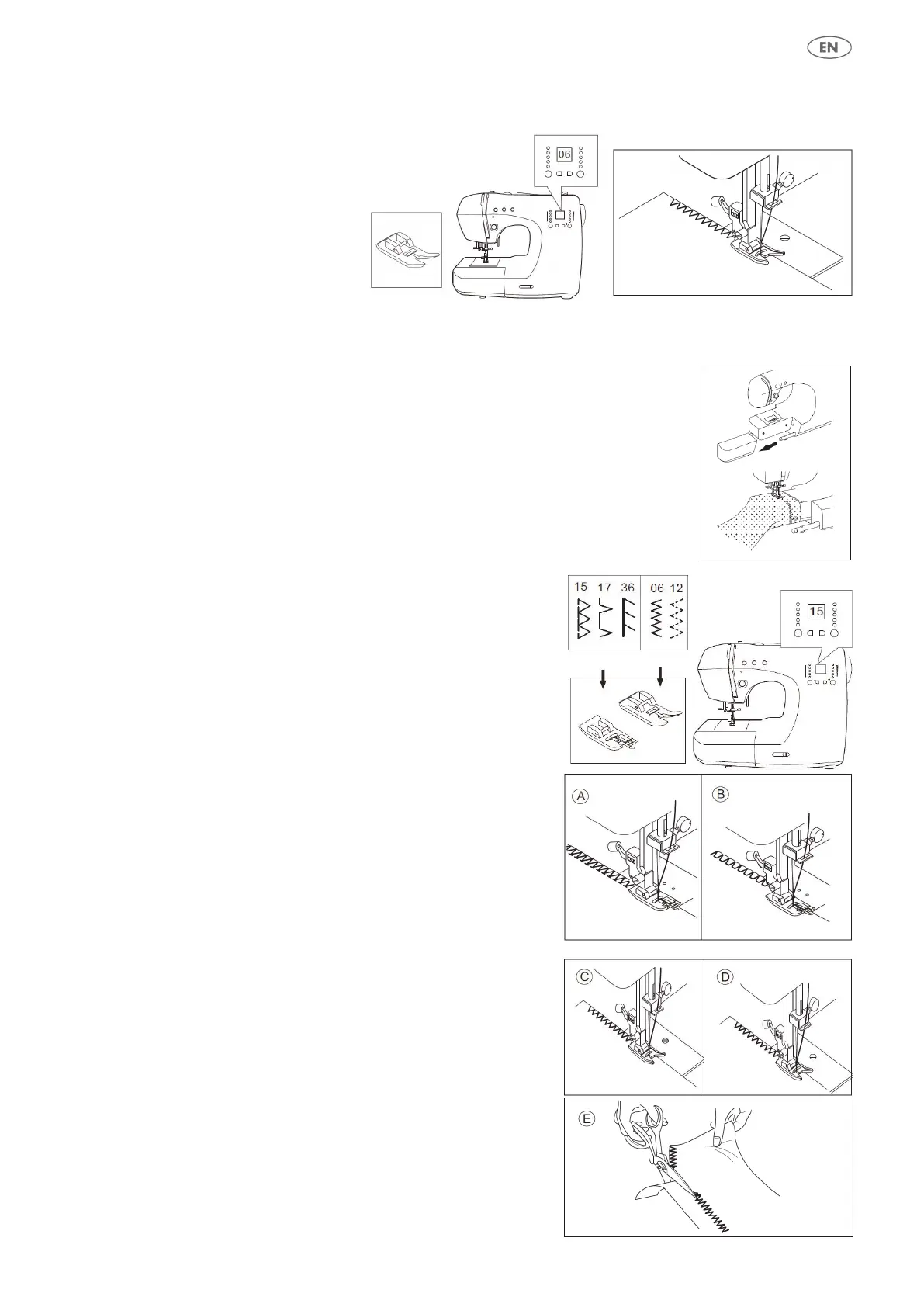 CAUTION: Overcasting foot should be used for sewing patterns