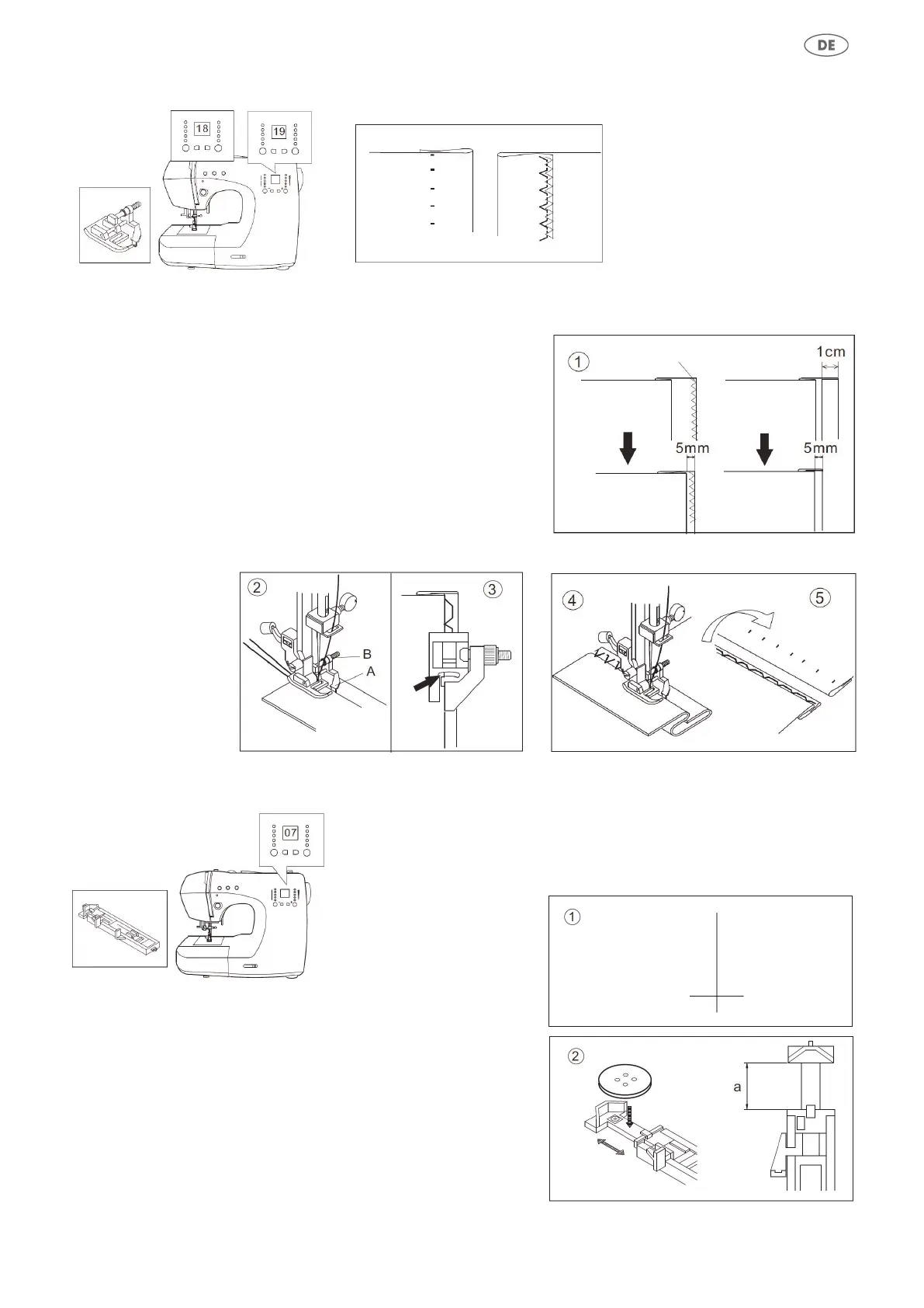 4. Senken Sie den Nähfuß und nähen Sie die Saum. Führen Sie