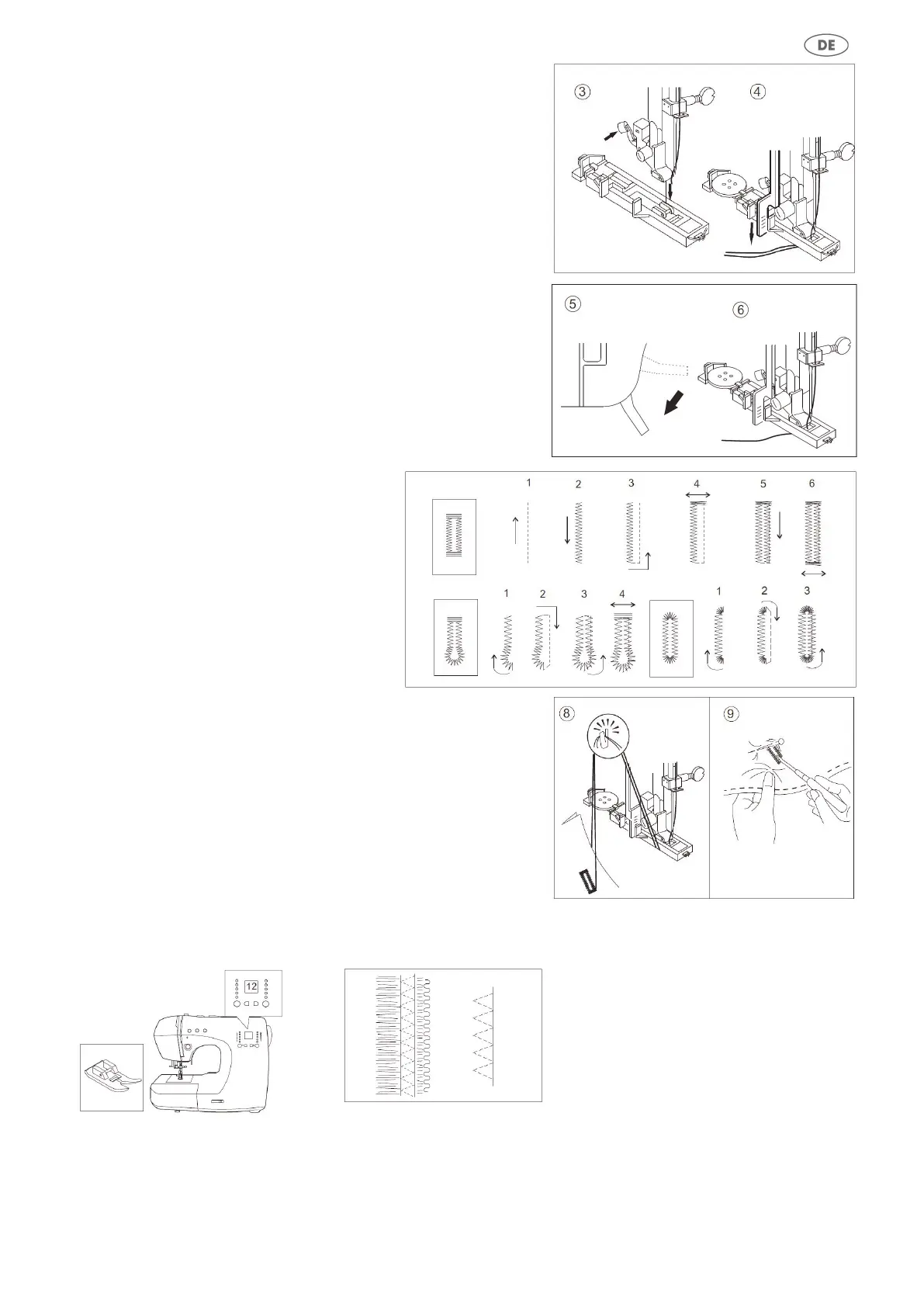 und bringen Sie den Ober-und Unterfaden auf die linken Seite.