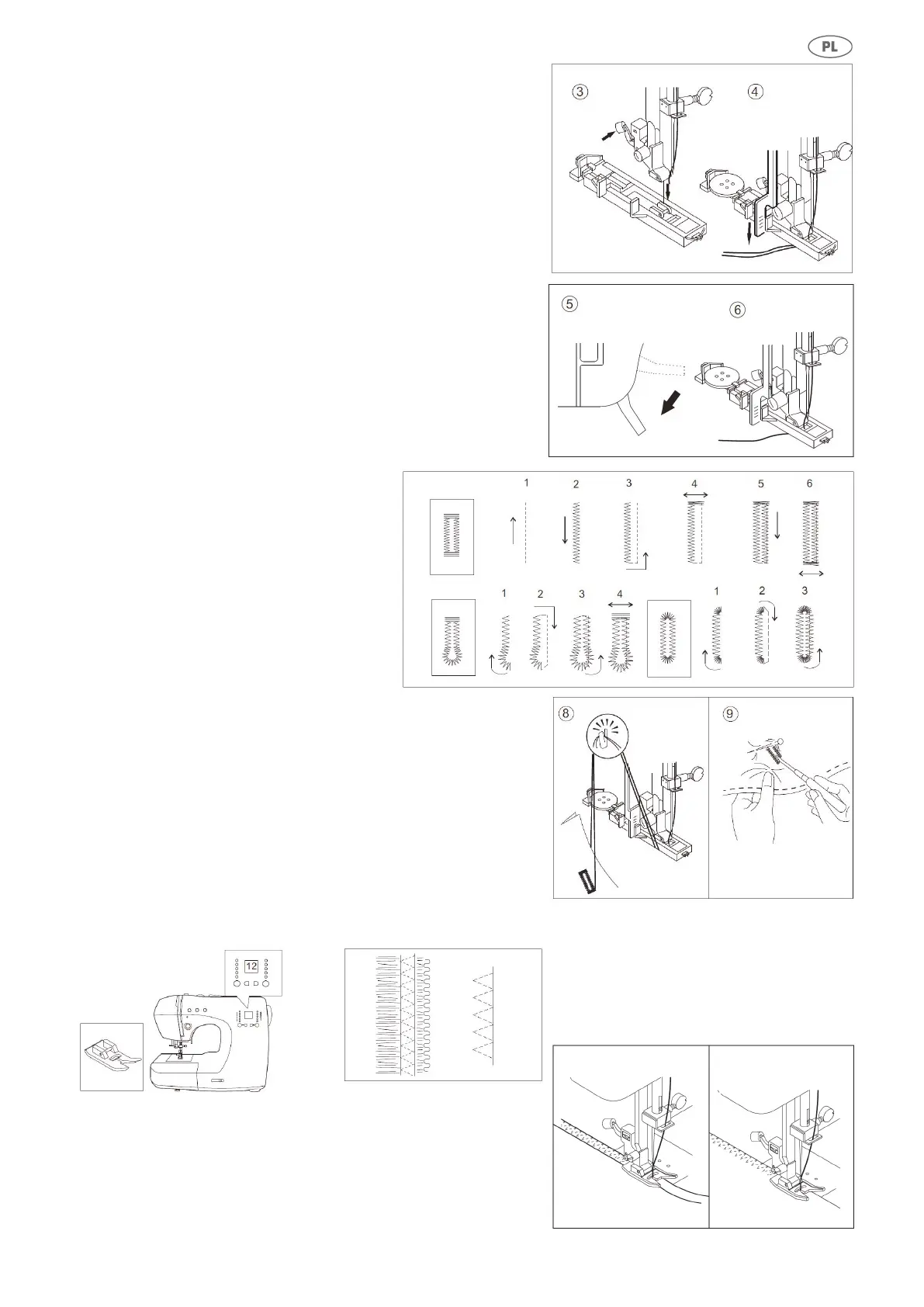 8. Podnieś stopkę i obetnij nić. By wyszyć tą samą dziurkę podnieś