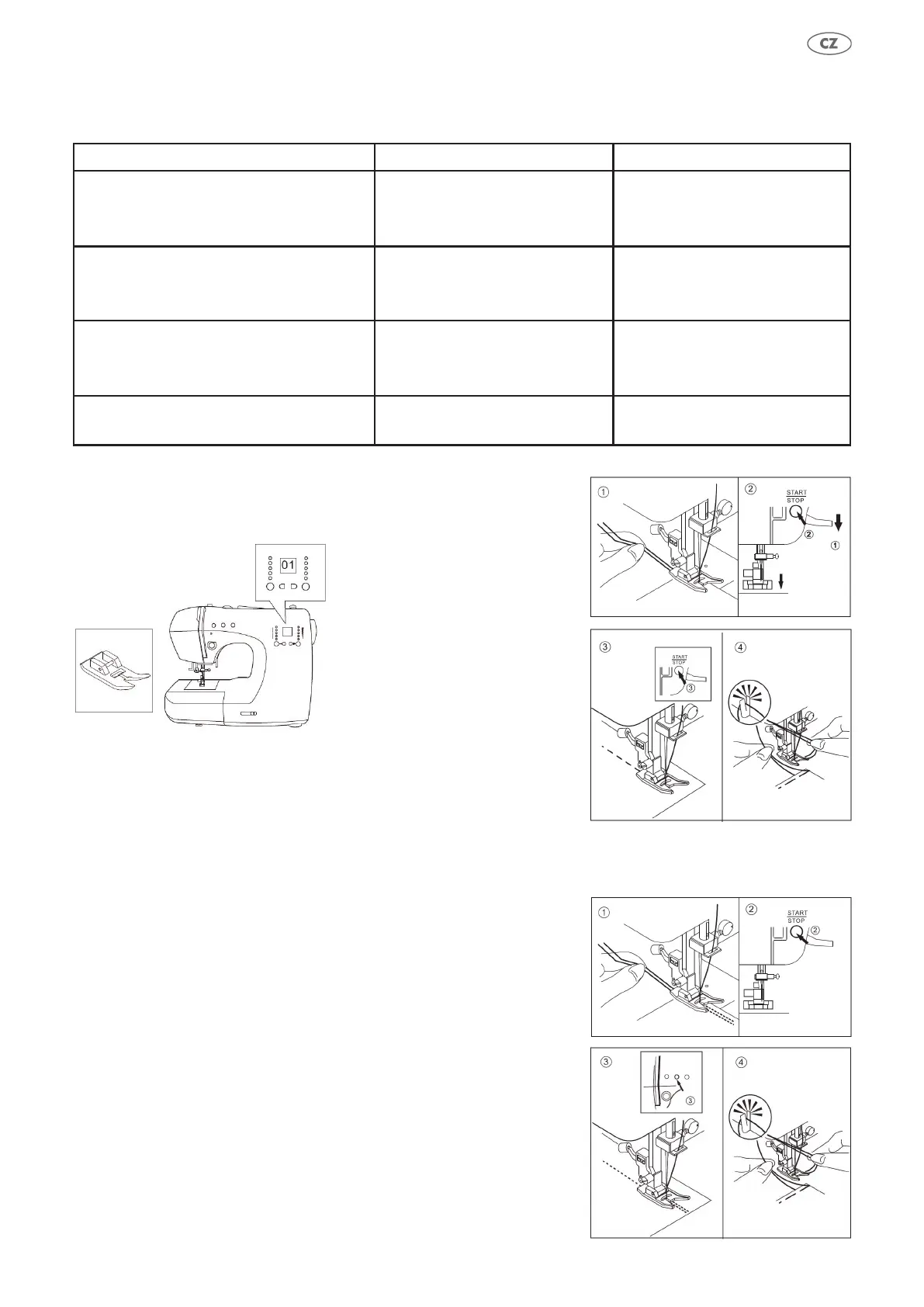 1. Umístěte pod přítlačnou patku šicí materiál a držte spodní