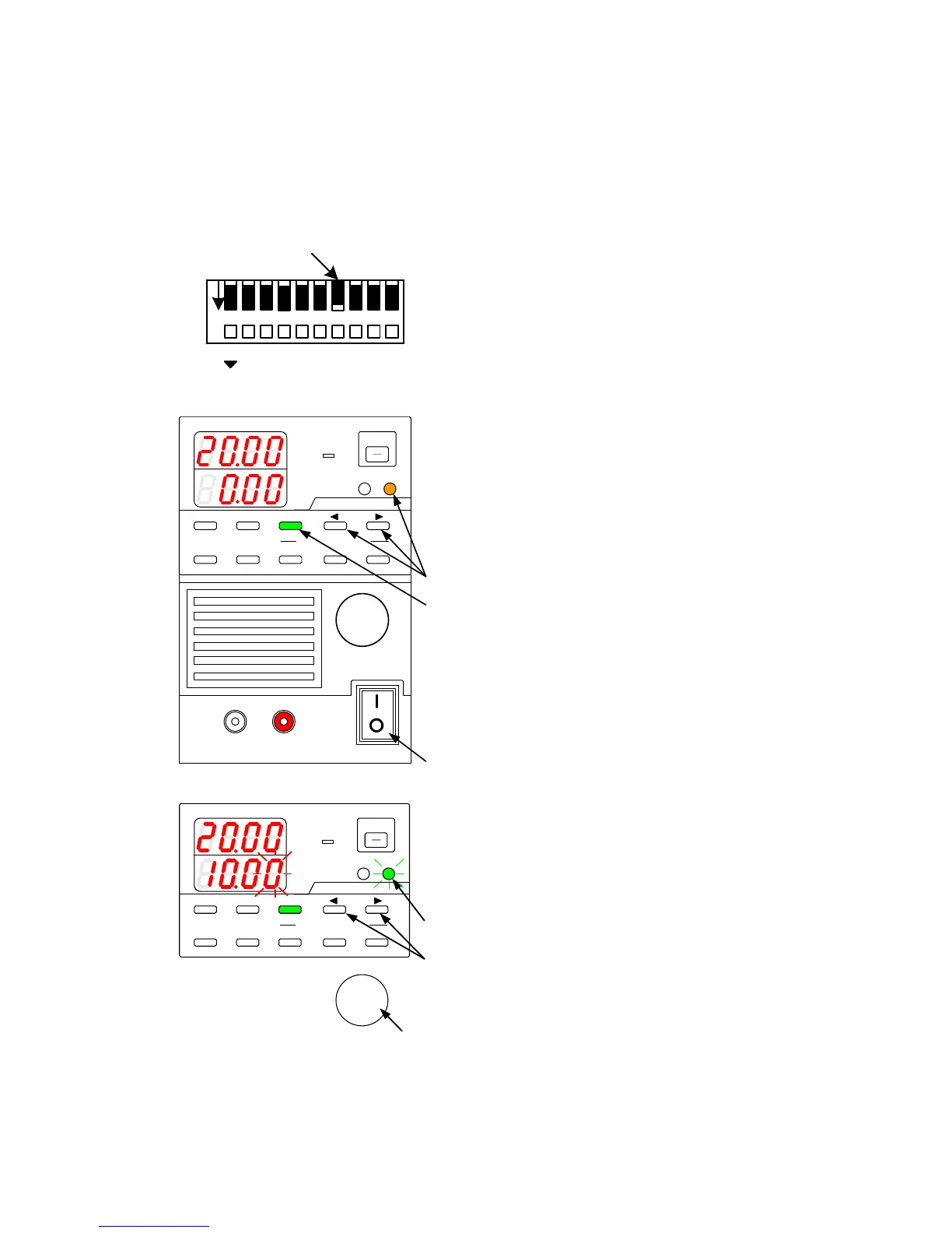 the "externally set current"), the set current value represents the internally set current (set by the rotary encoder) which