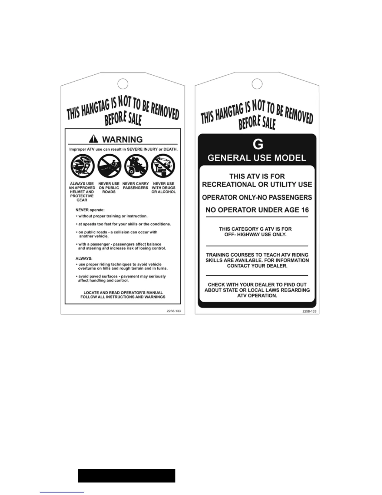 This vehicle comes with hangtags containing important safety information. Anyone
