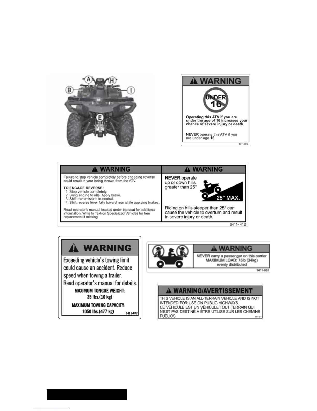 NOTE: The location and content of labels on the ATV you have purchased