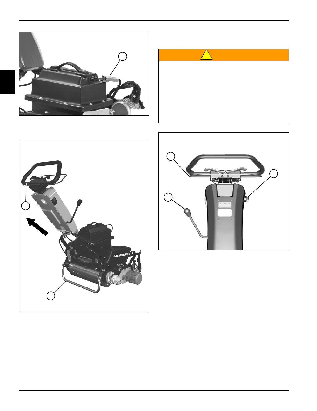 1. Release the Operator Presence Control (OPC) bail (2).