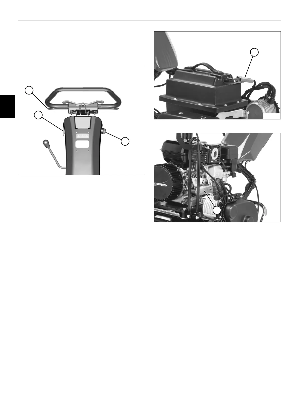 4. Slide the Operator Presence Control (OPC) bail (2)