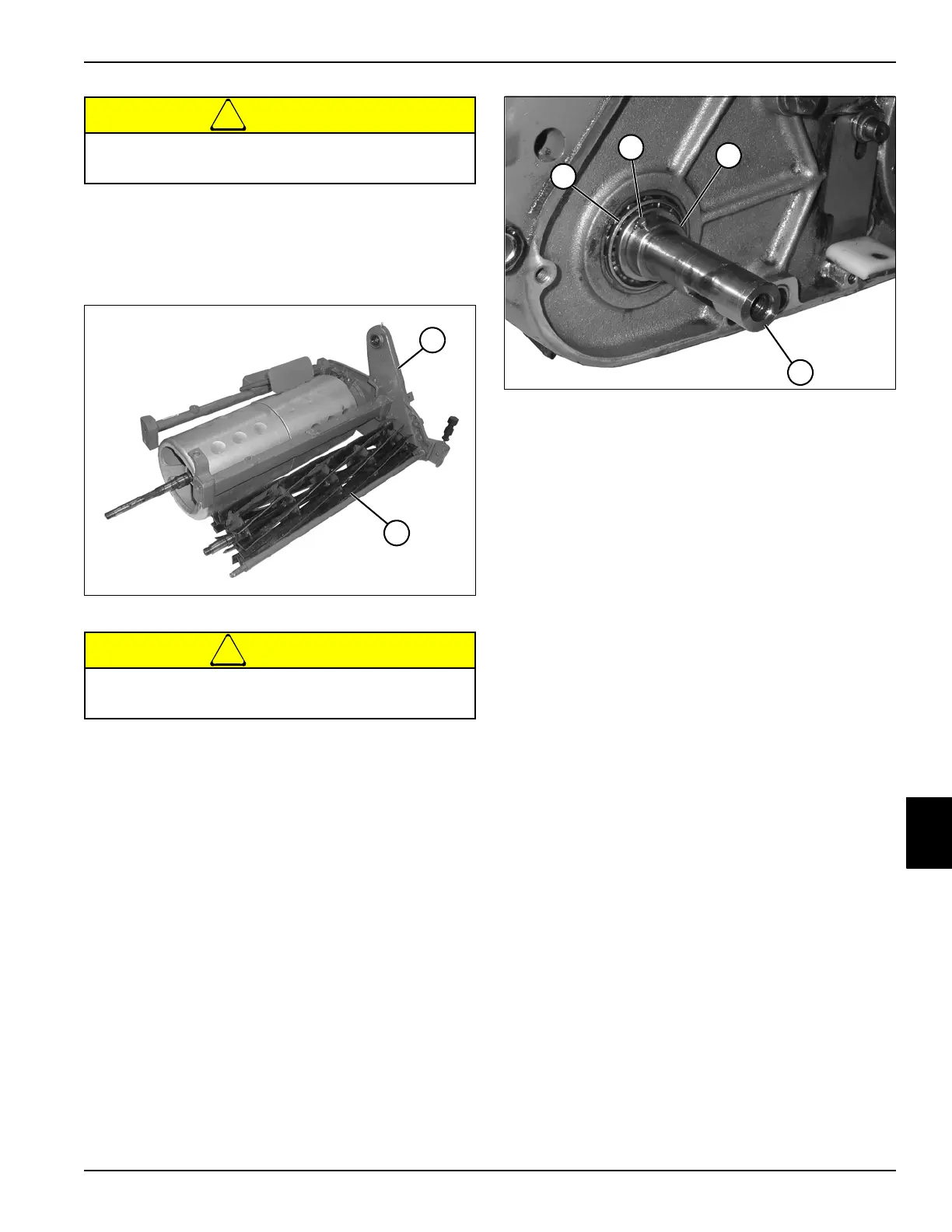 3. Install the reel bearing (4) on the left (drive) side of