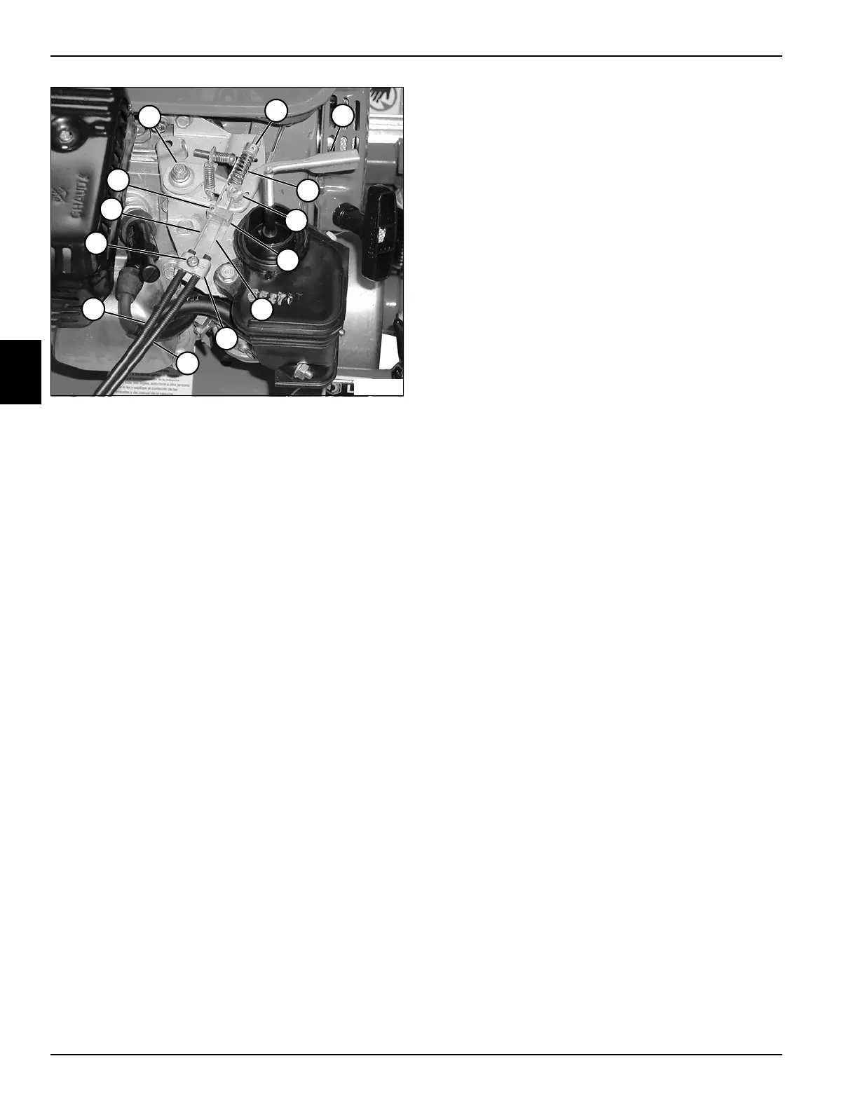 21. Loosen throttle lever pivot nut (46) until throttle lever