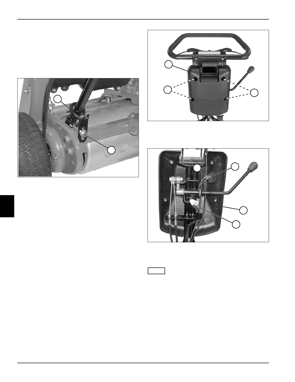 2. Loosen screws (2) on both sides of mower and adjust