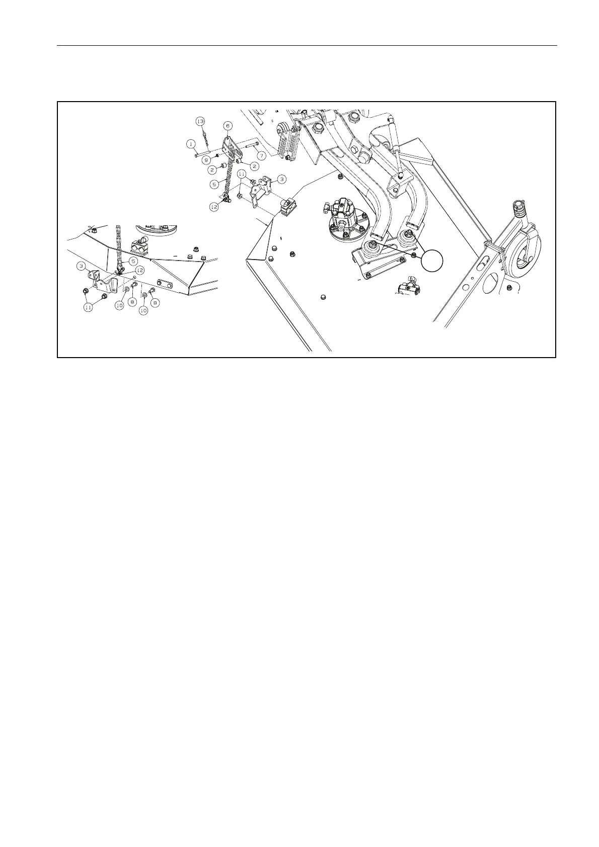 8 Take last link of Height of Cut Chain item 5 and fit into centre most hole of Adjustable Bracket item 6